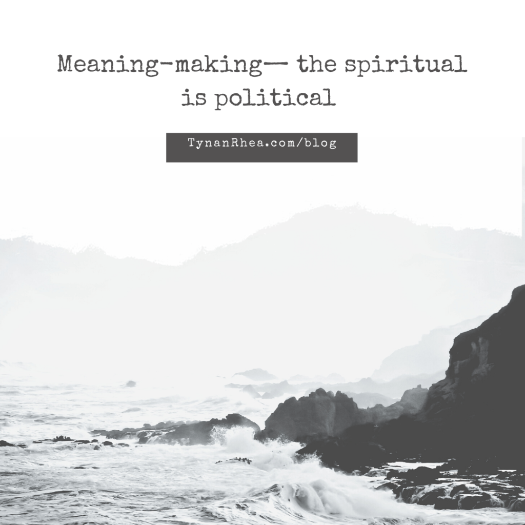 Spiritual meaning-making encourages reflecting on our agency within an experience and acknowledging both the power and uncontrollable chaos of reality. This perspective calls on us to respond to injustices (embrace our agency). To consider who or what to hold accountable for making change (dismantle power).