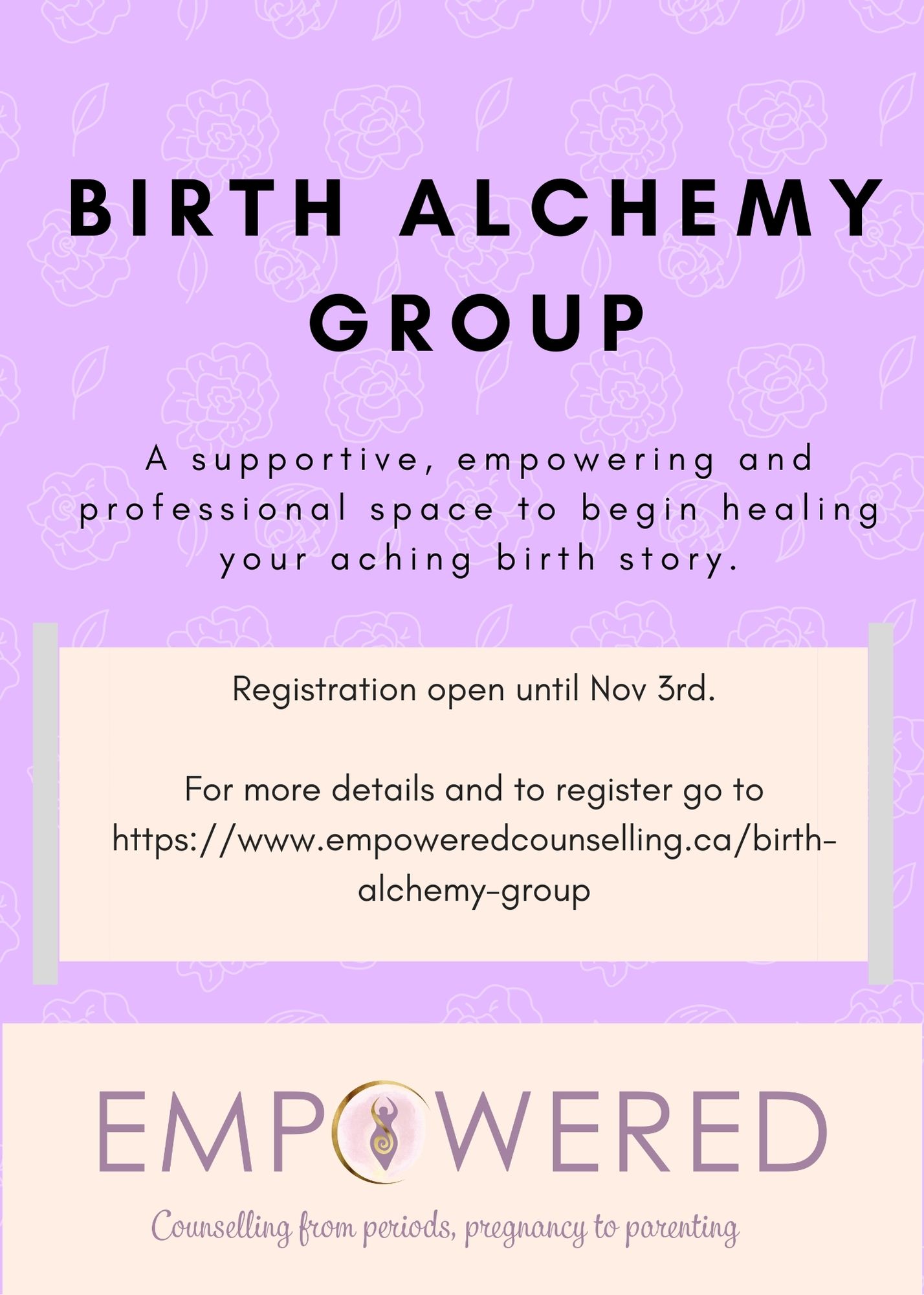For more information about the group, please visit: https://www.empoweredcounselling.ca/birth-alchemy-group